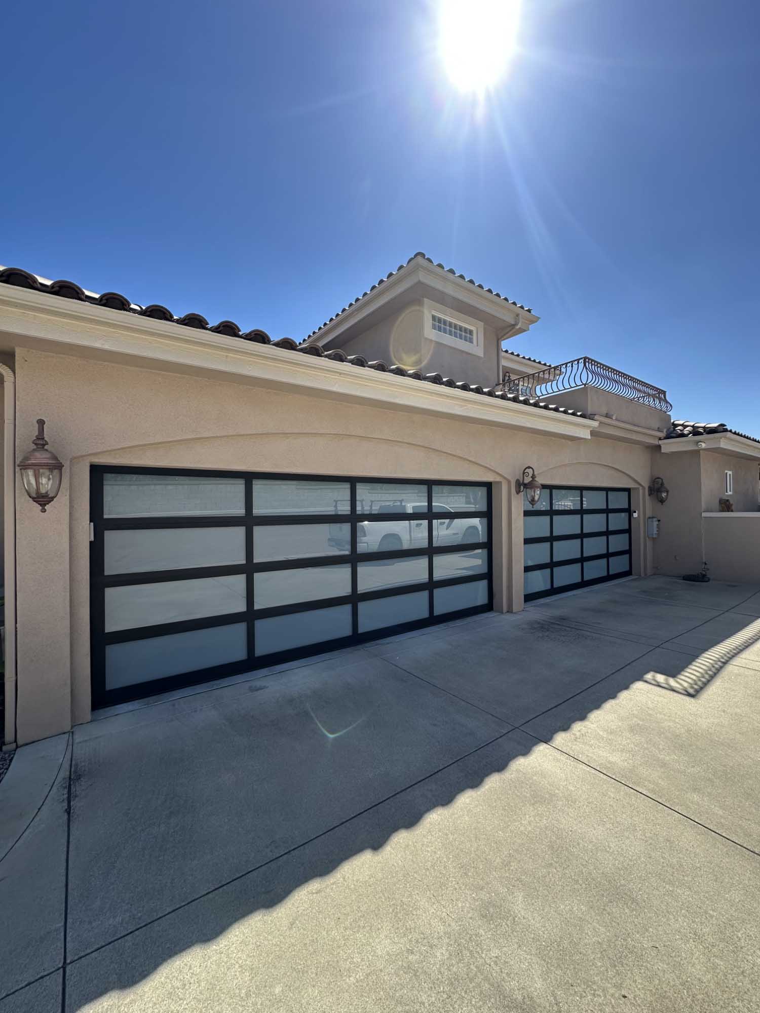Project description: We recently installed two modern, full-view glass garage doors for this customer, giving the home a sleek and elegant upgrade. The black aluminum frames paired with frosted glass panels provide a perfect balance of privacy and natural light, enhancing both curb appeal and functionality. The installation was completed with precision to ensure smooth operation and long-lasting performance. The customer was very happy with the results and loved the new, modern look these doors brought to her home.