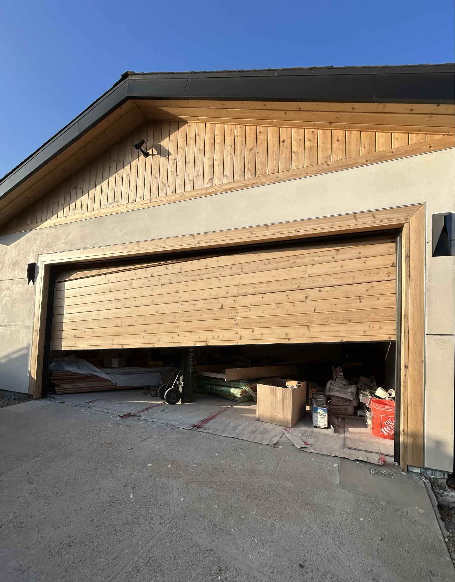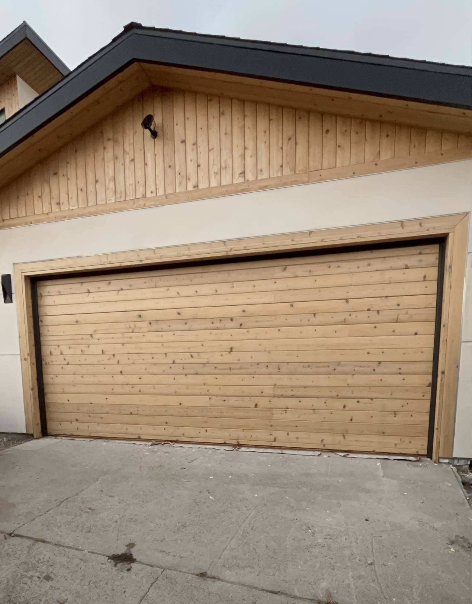 Project description: The door had come out of alignment, making it difficult and unsafe to operate. Our team carefully reset the rollers back onto the track, ensured the door was properly balanced, and tested it for smooth operation. The customer was very satisfied with the results and happy to have their wood door working like new again.